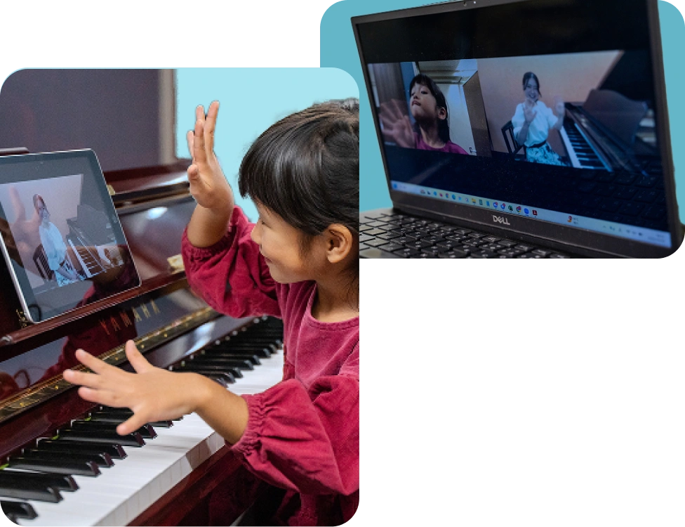 オンライン音楽レッスン用に独自に開発していますので、通常の設定だと聞こえない音色が聞こえるようになっています。先生と離れていてもスムーズに音楽レッスンが行えます。