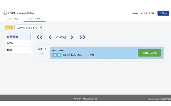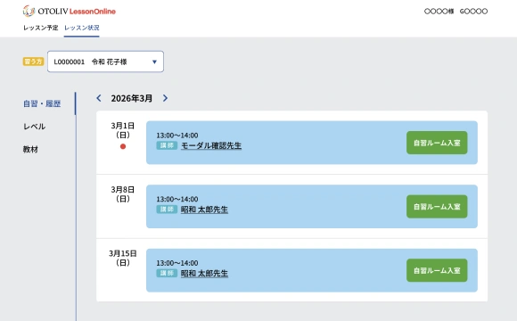 生徒様専用の「マイページ(レッスンルーム)」をご用意。レッスンの予定確認から自習まで、オンライン学習をスムーズにサポートします。